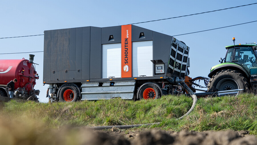 De mestpomp, een Cornell 4NHTB of een Doda AFI35 centrifugaalpomp, wordt via een schakelbare powerband aangedreven. Het grote voordeel van aandrijving via powerbanden is een minimaal vermogensverlies en een hoge flexibiliteit in de keuze van pompen met een bijhorende verschillende toerentallen. Hierdoor kan de motor altijd op zijn meest efficiënte toerental werken. Voor het reinigen van de slangen is schroefcompressor gemonteerd met een gigantische capaciteit van 25m3/min. Het verhogen van de capaciteit van de luchtcompressor was nodig vanwege de toenemende grotere transportslangen. Het reinigen van de slangen nam steeds meer tijd in beslag omdat de compressors niet in capaciteit groeiden. Met deze opstelling kan met dezelfde capaciteit waamee mest gepompt wordt ook gereinigd worden. De Gigant is voorzien van 2 hydraulieksystemen; een lage druksysteem voor de bediening van de diverse kleppen en functies en een hoge druk gesloten systeem voor de aandrijving van de Vogelsang verdringerpomp. Hierdoor heeft de vulpomp een nog hogere capaciteit en kracht gekregen. De Gigant G400-15 heeft een 15m3 buffercontainer. Deze kan optioneel voorzien worden van een 6000 of 9000 (optie) ltr. schoonwatertank. Hierdoor neemt de mestbuffer af tot 8 kuub.