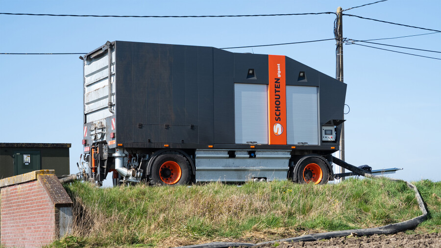 Het chassis van de Gigant G400-15 is in eigen huis ge-engineerd en gefabriceerd. Hierdoor is de motorpompunit compact en toch toegankelijk voor alle componenten. De BPW onderstellen zijn lucht geveerd en geremd. De voorste as is hydraulisch aangedreven via geïntegreerde rijmotoren. Deze motoren worden vrij geschakeld bij transport. Met de afstandsbesturing kan de motorpompunit op het erf naar de plaats gemanoeuvreerd worden. De sterke rijaandrijving is geschikt tot hellingen van 20%. De Gigant G400-15 is voorzien van een 400pk 13 liter Scania StageV dieselmotor welke een hoog koppel en vermogen bij een laag toerental heeft. Het maximum vermogen is al beschikbaar vanaf 1200 rpm. Hierdoor heeft de motor een uiterst gunstig brandstofverbruik.